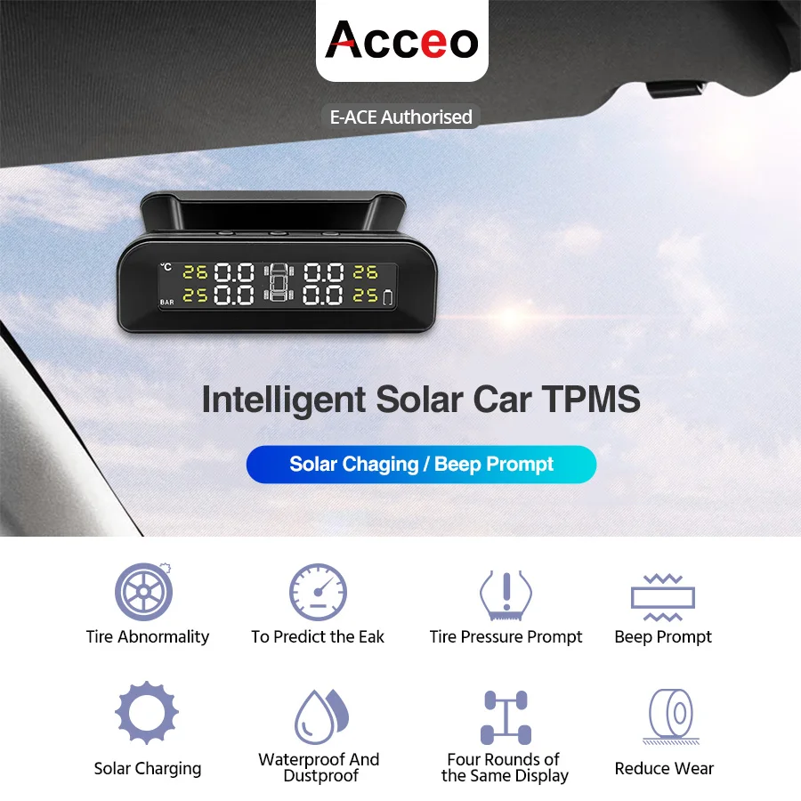 نظام إنذار لمراقبة ضغط الإطارات في السيارة يوجد فيه نظام للتحذير عند أرتفاع درجة حرارة الإطارات يتم شحن الجهاز عن طريق وضعه في أشعة الش...